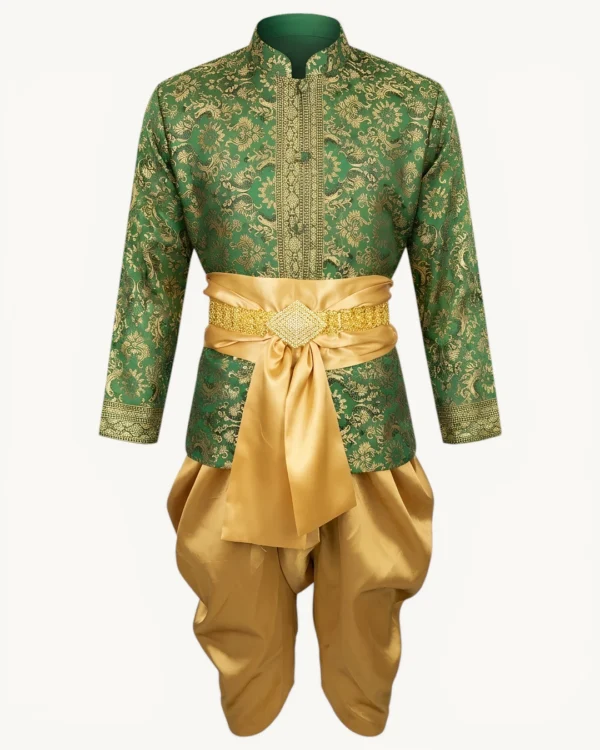 Price range: $119.00 through $185.00Luxury silk for life’s special moments. The Kittisak: Premium men’s Thai brocade ensemble with floral silk shirt, satin Chong Kraben, and gold beaded sash belt.
