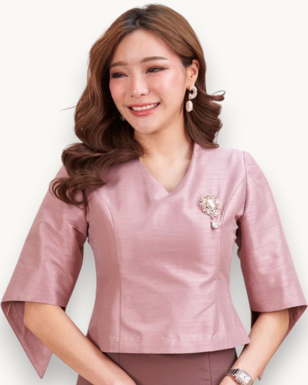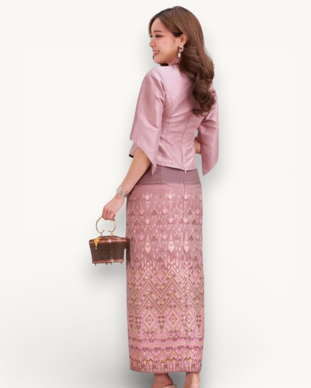 Indulge in the allure of Thai heritage with ‘The Pathumma’ set. Crafted from luxurious 4-strand, 3-ply silk, this ensemble features a beautifully tailored blouse and a gracefully draped skirt. The blush pink hue exudes sophistication, making it perfect for weddings, ceremonies, or any special occasion where you desire to showcase timeless elegance.